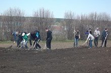 Мәктәп яны бакчасында язгы эш гөрли. 6,7,8 нче сыйныф укучылары яшелчәләр утыртыр өчен, җир казыдылар. түтәлләр ясадылар.
