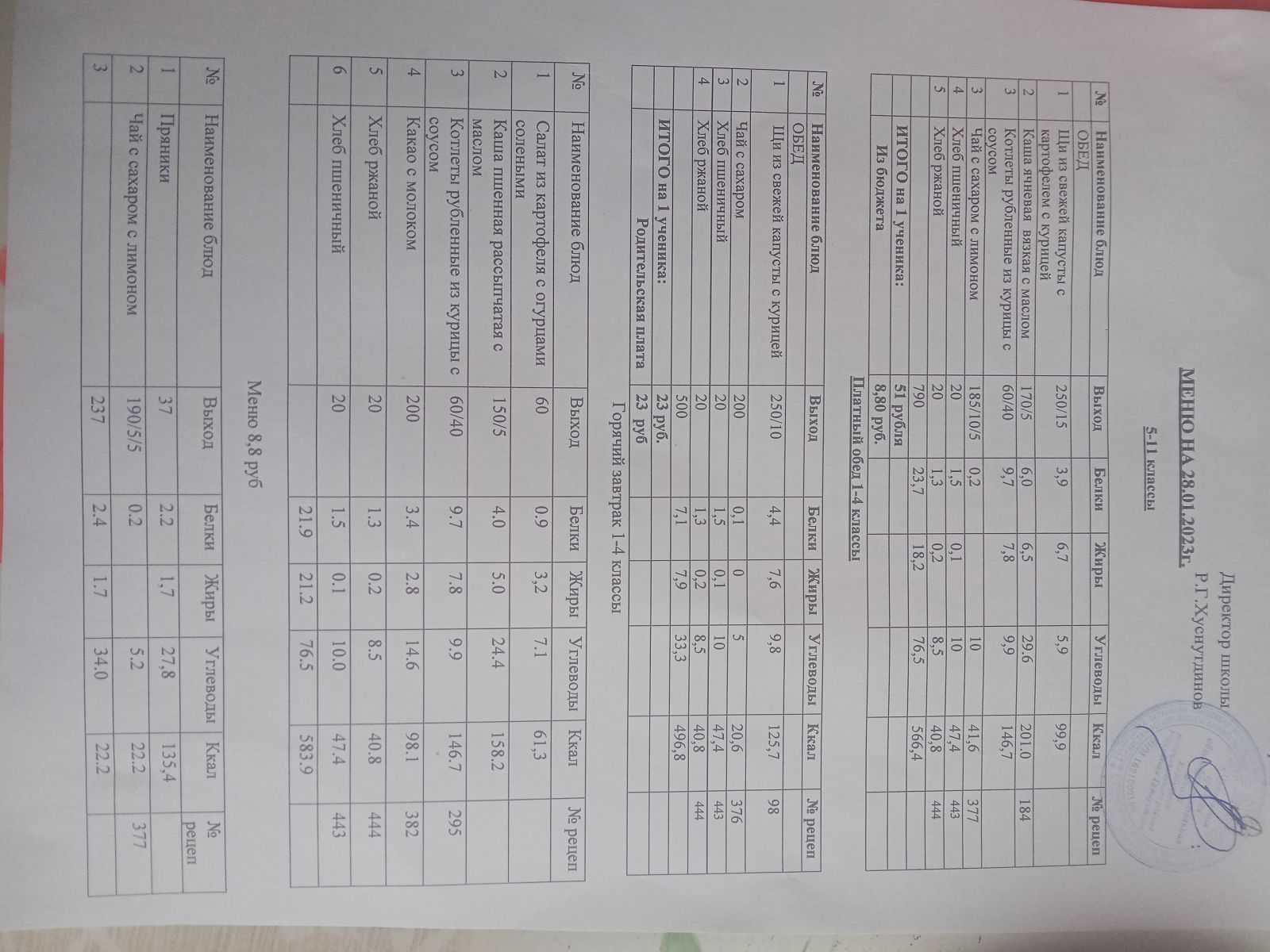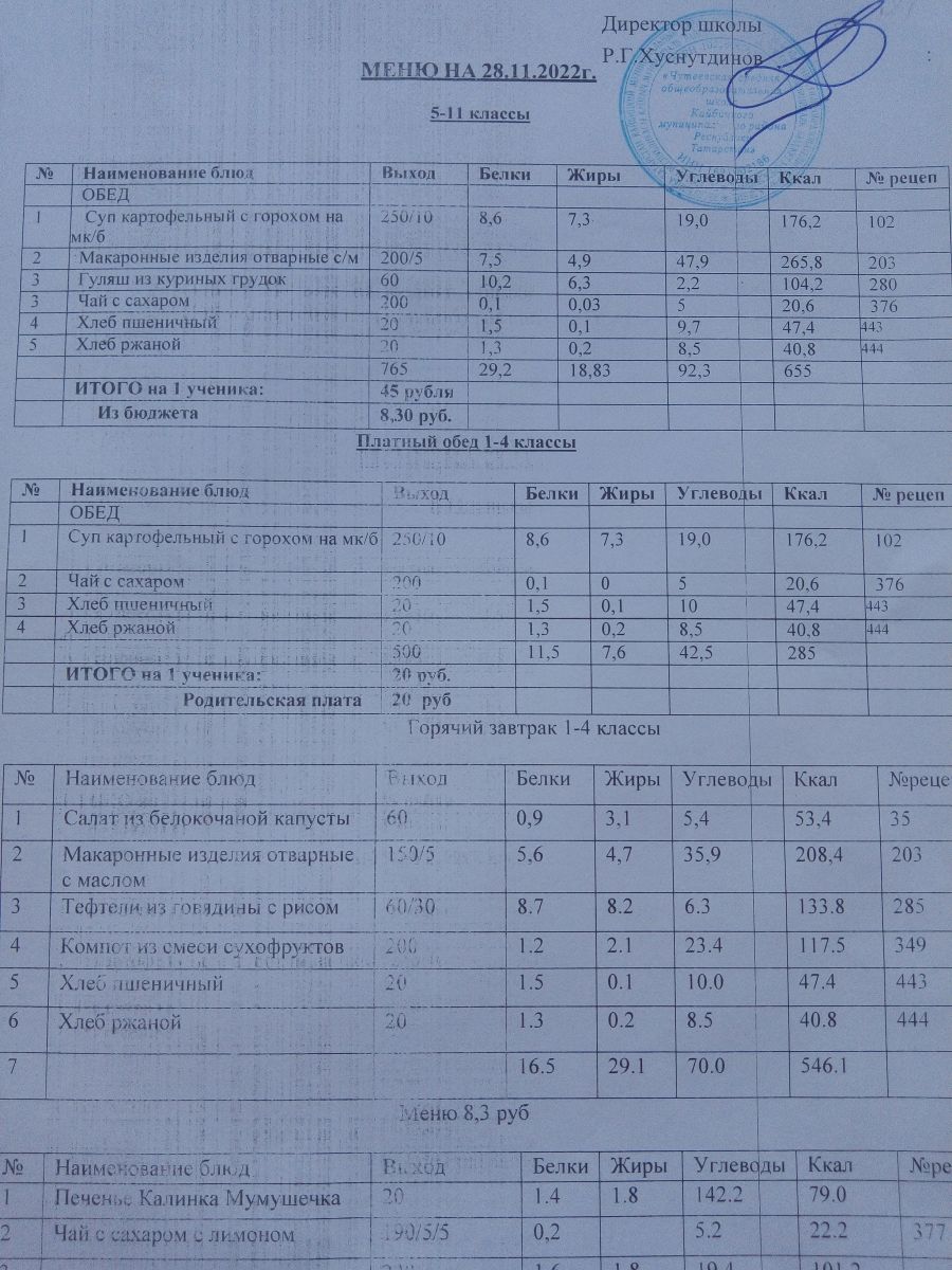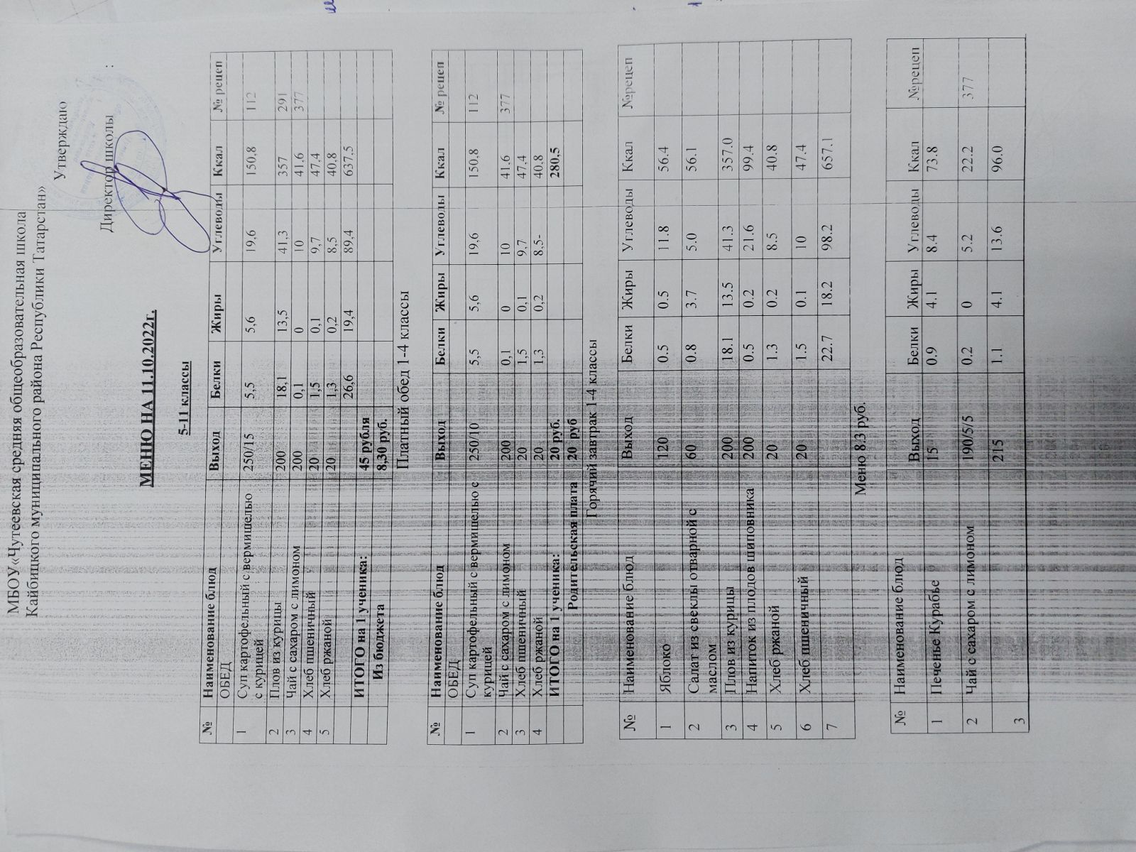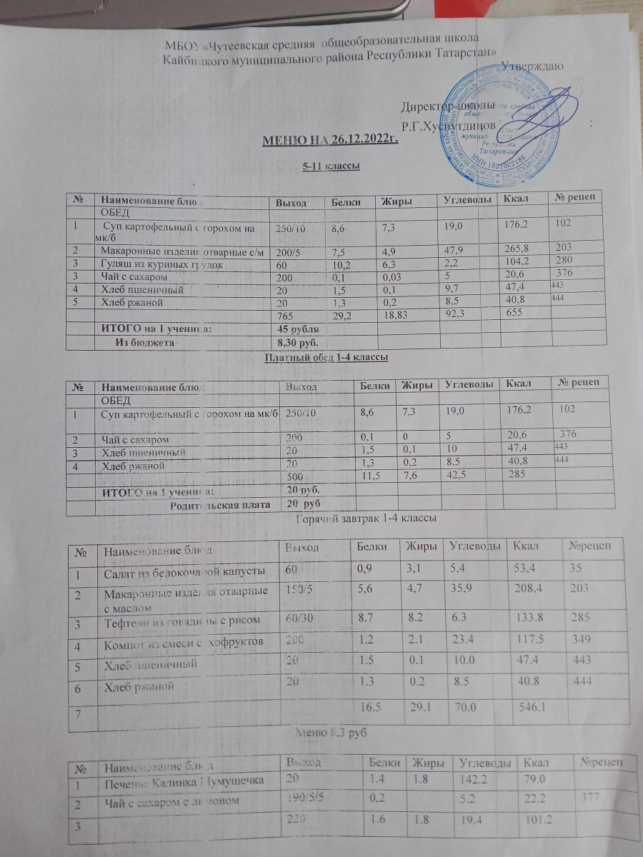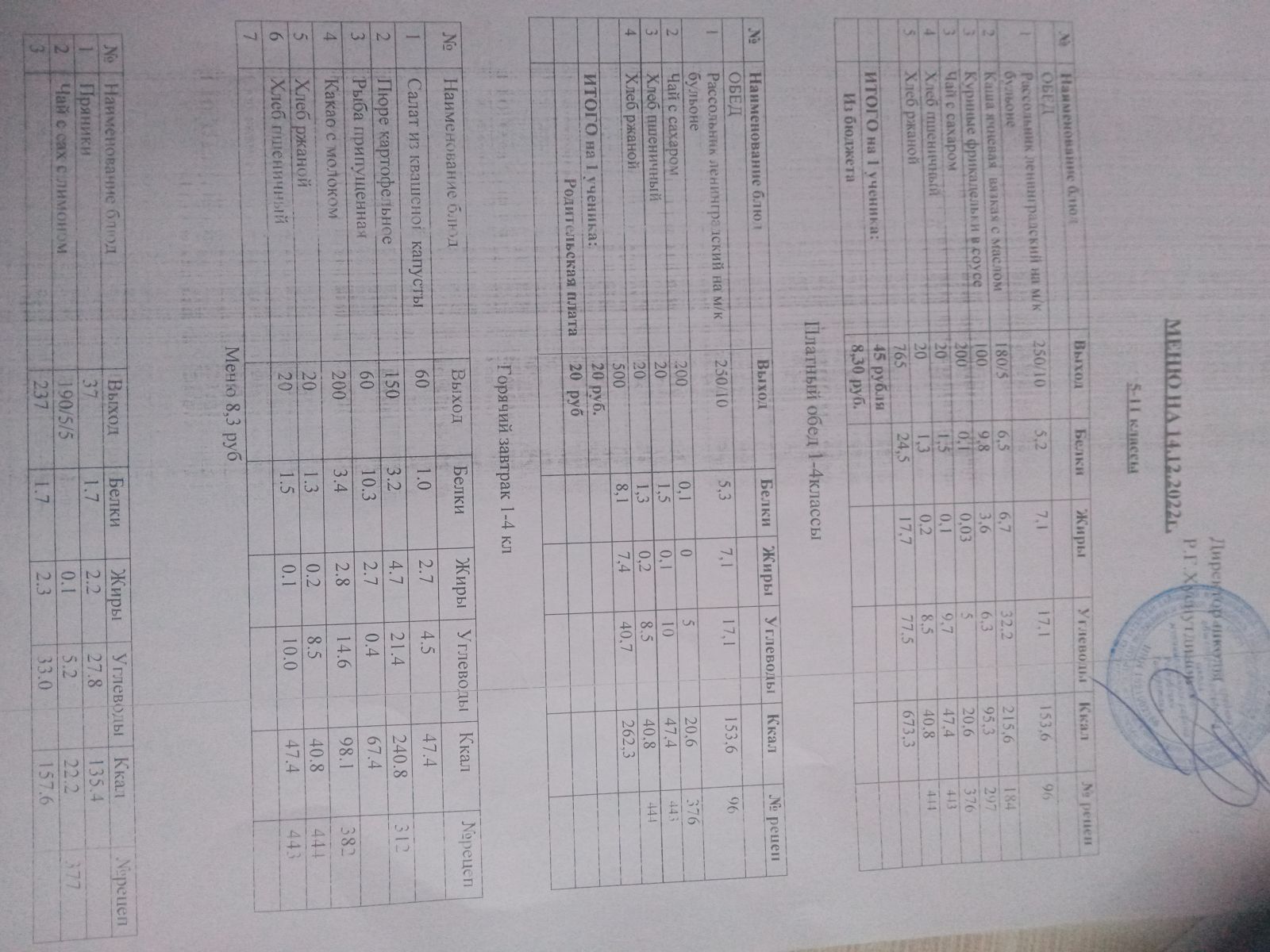 - Меню на 20 рублей, меню на 8,30 рублей