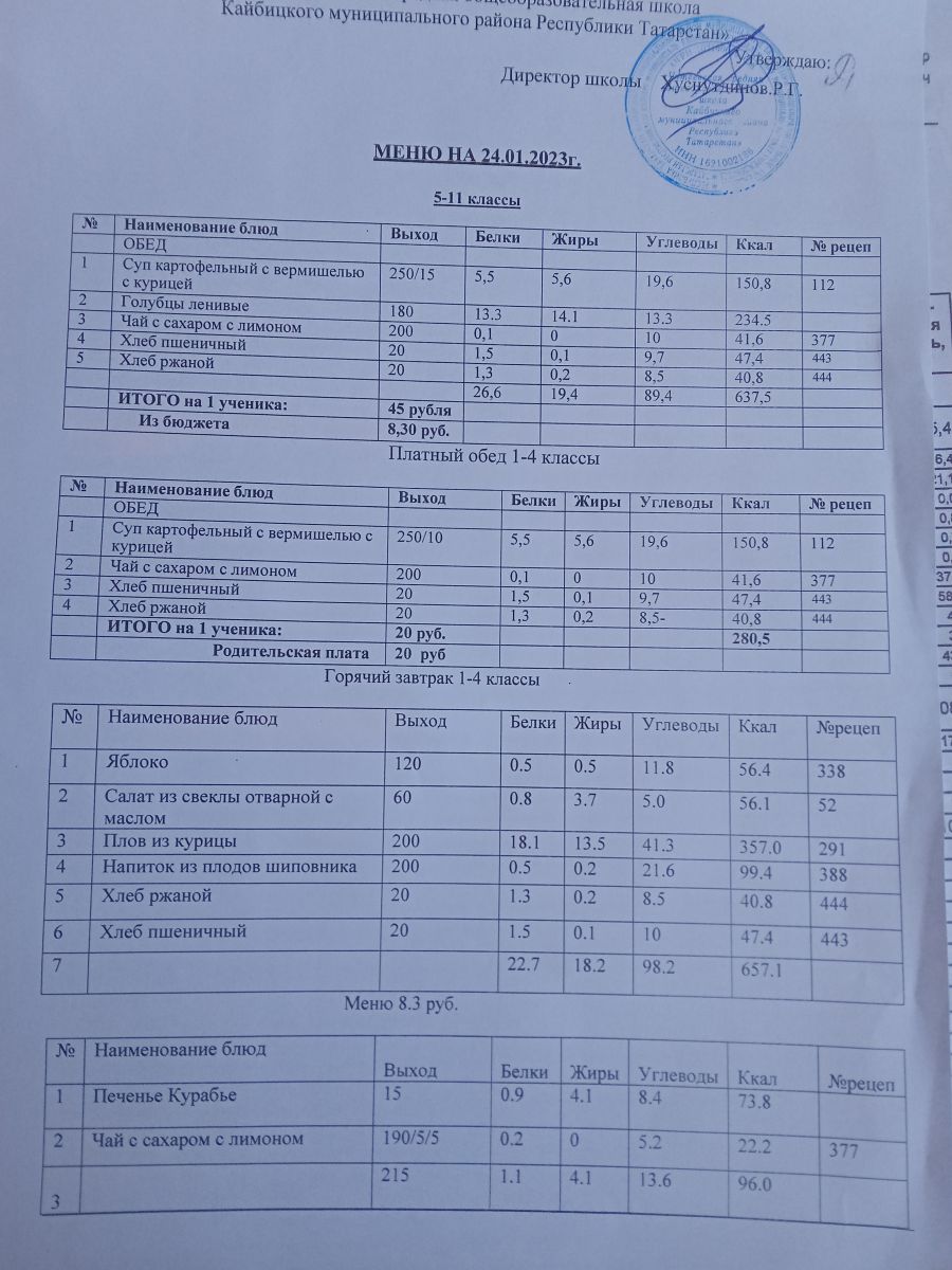 - Постановление об организации питания обучающихся общеобразовательных организаций Кайбицкого муниципального района РТ на 2024-2026 годы, от 19.10.2023 № 452