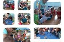 Цель: Выявить свойства воды: вода может быть тёплой и холодной, некоторые вещества растворяются в воде. Чем больше этого вещества, тем интенсивнее цвет; чем теплее вода, тем быстрее растворяется вещество, вода может менять вкусовые качеста, вода может удерживать лёгкие предметы, а тяжёлые в ней тонут.