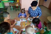 Познакомить с названиями игрушек имеющихся в групповой комнате; побуждать проводить элементарную классификацию по назначению, цвету, форме; воспитывать партнёрские отношения во время игры, аккуратность; развивать умение детей отгадывать предмет по описанию; учить выполнять аппликацию из готовых деталей, составлять композицию "Мячики катятся по дорожке", воспитывать самостятельность при выполнении задания.