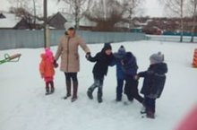 Вот здорово! За окном легкий морозец и снег! Не секрет, что для физического развития, укрепления организма детям необходимо как можно больше времени проводить на свежем воздухе. А чтобы холод принес пользу и не помешал малышам получить удовольствие от прогулки, они должны быть заняты интересным делом. Для детей можно придумать много игр и забав на свежем воздухе. Вот и наши воспитатели стараются делать прогулки детей интересными, полезными и увлекательными. С детьми проводим общеразвивающие упражнения, играем в подвижные игры, метаем мячи, снежки в цель, дети играют в хоккей. Дети с удовольствием расчищают дорожки к веранде, постройкам, рисуют на снегу, строят снежные дома, лабиринты, рассматривают следы на снегу.
