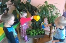 Цели: формировать бережное отношение к природе посредством расширения представлений об окружающем мире, на основе ближайшего социального, природного окружения; познакомиться с комнатными цветами; учить правильно поливать цветы.