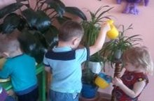 Цель: учить детей ухаживать за комнатными растениями, поливать из леечки водой комнатной температуры; закреплять знания детей о разных способах полива комнатных растений.