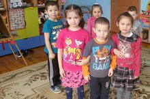 Икенче кечкенәләр төркеме балалары тәрбияче Краснова В.А. белән уен алымы - Дымково авылында сәяхәттә булдылар. Рус халык уенчыклары һәм бизәкләре белән таныштылар. Балалар бу уенчыкларның балчыктан ясалаганын һәм ак буяу белән капланганын, матур бизәкләр белән бизәлгәнен белделәр. Балалар дымка аты силуэтына бизәкләрне бөтен рәсем буенча таратып урнаштырды.