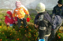 Над ними кружат бабочки, пчёлы, а наши малыши с интересом следят за ними и помогают взрослым в сборе семян для будущего урожая
