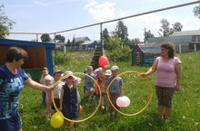 Кульминационным моментом стало выступление клоунов,запуск воздушных шаров в небо.