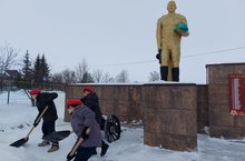 28 января учащиеся нашей школы очищали территорию обелиска от снега.
