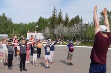 2 день пришкольного лагеря началась с утренней зарядки.