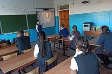 Сегодня по плану в 9-10 классах консультации по предметам, а одиннадцатиклассники выполняют пробный ЕГЭ по русскому языку. Также уделено время на спортивные игры.