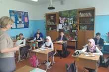 | У нас учат: | 13 учителей/13укытучы; 2 воспитателя/2 тәрбияче |