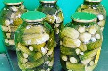 В школьной столовой кипит работа.Работники столовой каждый день маринуют огурцы.