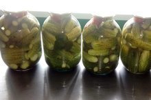 В школьной столовой кипит работа.Работники столовой каждый день маринуют огурцы.