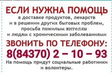Уважаемые граждане!Телефон по доставке продуктов питания первой необходимости и лекарств одиноким пожилым:Ø колл-центр «МЫ ПОМОЖЕМ!» 8(843)5983598;Ø телефон «горячей линии» ОНФ по Республике Татарстан 8 8002003411;Ø ТРО ВПП «Единая Россия» 8(843)2381000;Ø телефон горячей линии Кайбицкого муниципального района 8(84370)21093 (режим работы с 8:00-18:00 без перерывов на обед, без выходных).Берегите себя и своих близких!