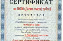 На пленарном заседании августовской конференции работников образования Кайбицкого муниципального района были подведены итоги подготовки школ к новому учебному году. Среди образовательных учреждений наша школа заняла 2 место и награждена сертификатом на 10 000 рублей.