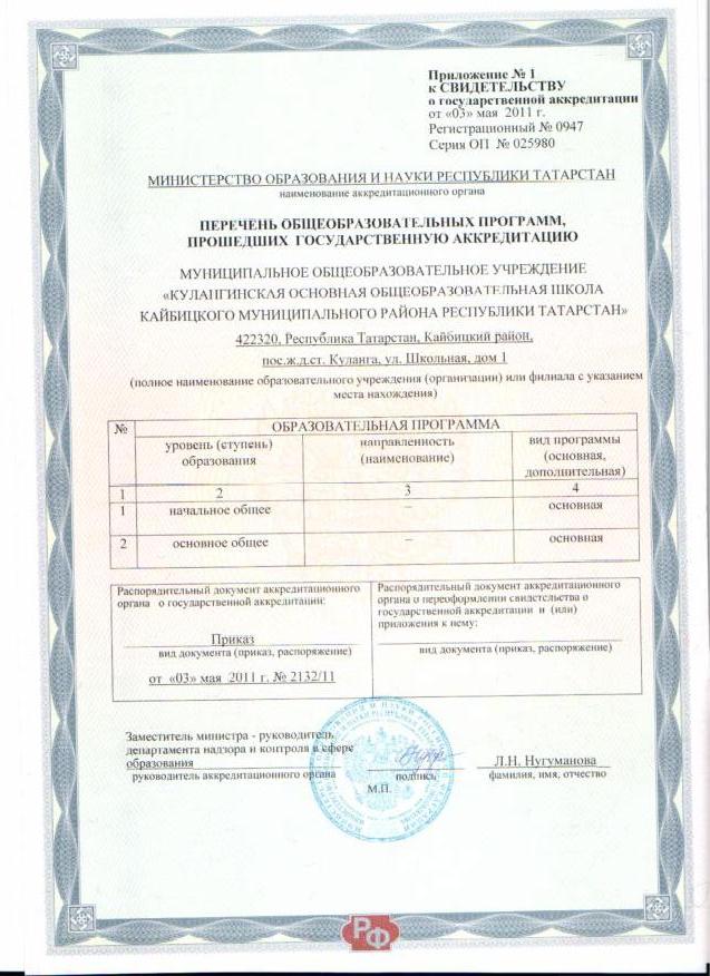 Перечень общеобразовательных программ прошедших аккредитацию