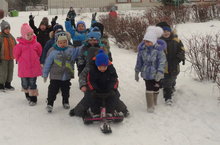 Бүген зурлар төркеме балалары (тәрбиячеләре Салахова И.Г. б/н) саф һавага чыккач, башта кышкы табигатьне күзәттеләр. Аннан балалар рәхәтләнеп үзебез ясаган таудан шуып уйнадылар. Һәр баланың да урамнан кергәндә битләре алсуланып, йөзләренә канәгатьлек хисе чыккан иде.