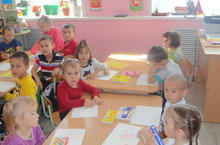 Буген зурлар төркеме балалары рәсем шөгылендә кышкы уеннар турында сөйләштеләр. Алар үзләре яраткан кышкы уенны чагылдырып "Кышкы уеннар" дигән сюжетлы рәсем ясадылар. Башта алар кечкенә әңгәмә кордылар,ә аннан тау, кеше рәсемен ясау тәртибе белән таныштылар. Шөгыльнең практик өлешендә алар үзләрен сурәртәп рәсемне ясап та куйдылар.
