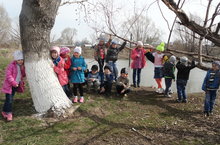 Саф һавга чыккач Ильхамия Галимовна балалар белән җылы яклардан кайткан кара каргаларны күзәттеләр. Каргаларның коелган агач ботакларын җыеп агач башына оя коруларын, тиздән йомырка салып балалар үстерәчәкләрен аңлатты. Кошларны рәнҗетмичә сакларга кирәклеген төшендерде.