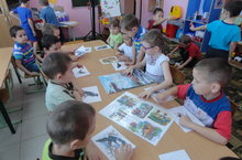 "Йорт хайваннары һәм кошлары" атналыгы барышында икенче кечкенәләр төркемендә балалар Диля Асадуллина белән берлектә йорт кошлары һәм хайваннары белән танышуны дәвам иттеләр. Ишек алды макеты, рәсемнәр ярдәмендә аларның төс, кыяфәте күзәттеләр, тавышларыннан аера белергә, шигырьләр өйрәнделәр, әкиятләр тыңладылар.