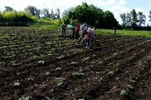 Укучыларның җәйге яллары мәктәп кишәрлегендә эшләре үрелеп бара. Бу көннәрдә укучылар бәрәңге чүбен утау белән мәшгуль.