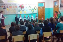 Бүген башлангыч сыйныфлар укытучысы Хәмидуллина М.С. беренче сыйныф укучылары белән "Юл билгеләре иленә сәяхәт" исеме астында мәктәп күләмендә ачык тәрбия сәгате үткәрде. Әлеге чарага башлангыч сыйныф укучылары һәм класс җитәкчеләре, шулай ук беренче сыйныф укучыларының әти-әниләре дә чакырылган иде. Тәрбия сәгатендә укучылар юл кагыйдәләре турында булган белемнәрен ныгыттылар, юл билгеләре турында шигырьләр-җырлар башкардылар, уеннарда катнаштылар. Чара бик күңелле һәм файдалы үтте.