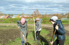 Ай ахырында бакчага төрле органик һәм минераль (фосфорлы-калий) матдәләр кертергә кирәк. Шул уңайдан безнең мәктәптә дә җирләр эшкәртелде, бакчалар җыелды. Алмагач, карлыган төпләре йомшартылды, кышка әзерләнде.Шулай булганда гына, икенче ел уңышы да әйбәт булачак.