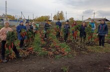 Мәктәп яны участогында кышка әзерлек дәвам итә. Бүген өлкән сыйныф укучылары кишер, кызыл чөгендер уңышын җыеп алдылар.