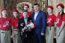 Ветерану войны Хасану Зиганшину глава района Альберт Рахматуллин вручил юбилейную медаль и подарок по случаю 75-летия Великой Победы. Наши юнармейцы участвовали в этой мероприятии и подарили ветерану цветы. -