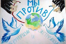 Конкурс рисунков «Мы против террора» является формирование у детей установок по неприятию идеологии экстремизма. Задачей является привлечение детей к агитации против идей терроризма и экстремизма в среде сверстников. Воспитание у детей уважения к ценностям мирной жизни и увековечение памяти погибших в террористических актах. -
