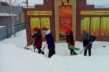 "Мәрхәмәтлелек атнасы" дәвам итә. Бүген булган кадәр күбрәк яхшы гамәлләр генә кыласы килә. 8-9 сыйныф укучылары авылыбыз уртасында урнашкан Бөек Ватан сугышында һәлак булучыларга урнаштырылган һәйкәл яны территориясен кардан чистарттылар.
