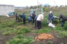 Өлкән сыйныф укучылары,укытучылар белән берлектә мәктәп бакчасында үскән кишер,кызыл чөгендер, ташкабак уңышын җыеп алдылар. Бәрәңгене сортларга аерып сакларга подвалга урнаштырдылар.Җыеп алган уңышыбызны саклыйк,ашханәдә витаминлы ризыклар белән тукланыйк!