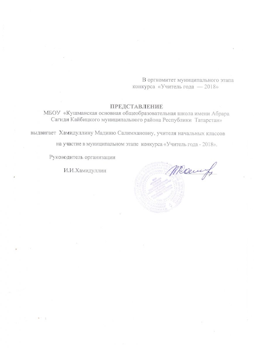 Муниципальное бюджетное общеобразовательное учреждение «Кушманская основная общеобразовательная школа имени Абрара Сагиди Кайбицкого муниципального района Республики Татарстан» ***«Татарстан Республикасы Кайбыч муниципаль районы Әбрар Сәгыйди исемендәге Кошман төп гомуми белем бирү учреждениесе» МБГББУ