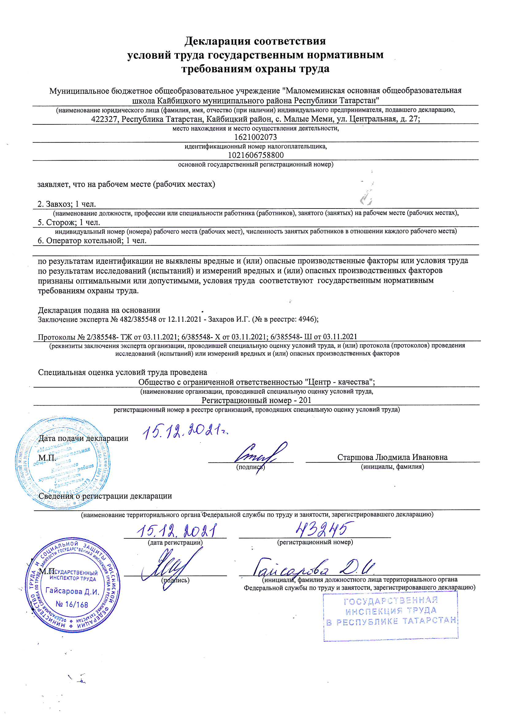 МБОУ "Маломеминская основная общеобразовательная школа Кайбицкого муниципального района РТ"/МБУУ"Кече меми төп гомуми белем бирү мәктәбе "ТР Кайбыч муниципаль районы"