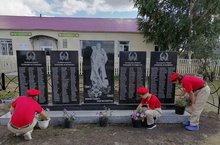 Юнармейцы провели убору вокруг обелиска в центре села