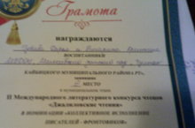 Воспитанники детского сада Губеева Дарья и Бичарина Кристина,приняли участие в конкурсе "Джалиловские чтения" ,со стихотворением:"Карак песи" и заняли третье место , в номинации: "Коллективное исполнение писателей- фронтовиков"