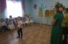 В младшей группе идет работа над инсценировкой сказки "Колобок"
