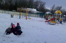 За оконный переплет.Столько радости принес первый снег детишкам.