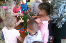Лук посаженный в младшей группе вырос и сегодня дети срезали зеленый лучок и отдали повару для вкусного супа.