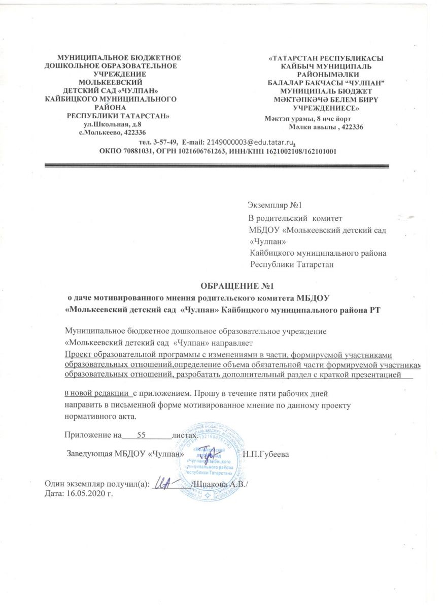 | Короткое название: | МБДОУ «Молькеевский детский сад «Чулпан» Кайбицкого муниципального района РТ» |
