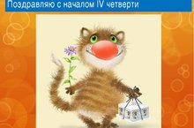 Дорогие ребята!Поздравляем Вас с началом четвертой четверти. Она будет небольшой и пролетит незаметно, а главное она будет очень насыщенная. Надеемся, что ученики класса закончат последнюю четверть так же хорошо, как и третью. -