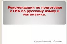 Цель: познакомить родителей с правилами и порядком проведения итоговой аттестации учащихся 9 класса, проанализировать подготовленность учащихся к предстоящим экзаменам.Повестка дня.1.О ходе подготовки к итоговой аттестации в 9 классе .2.Итоги пробных ОГЭ по математике и русскому языку.3. Психологическая готовность к сдаче экзаменов (отличие ОГЭ от традиционного экзамена).4. Самоподготовка, как одно из условий успешной подготовки к сдаче ОГЭ. -
