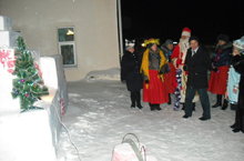 Жюри изначально встретили Дед Мороз, Снегурочка, символ будущего года - Огненный Петух, Матрёшки.