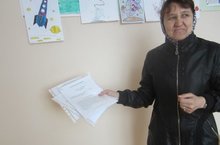 Учитель Полевобуинской НОШ сдает все материалы 4 класса администрации школы.