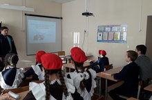 Учитель истории готовит юнармейцев к предстоящей олимпиаде.