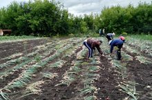 И мы очень рады, что у нас такой хороший урожай лука. -