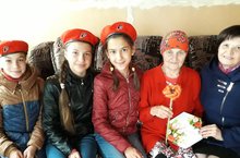 Юнармейцы поздравили Нину Михайловну с юбилеем от имени всей нашей школы.
