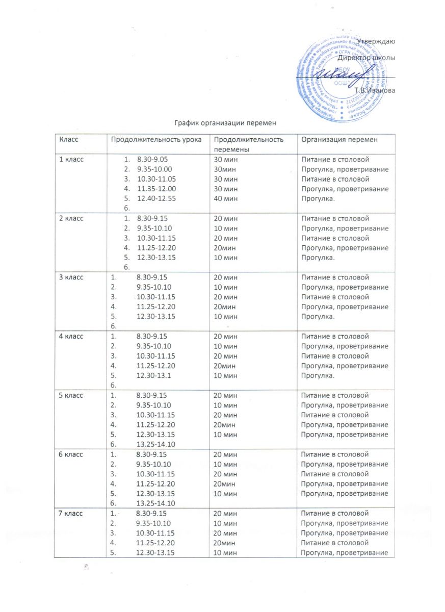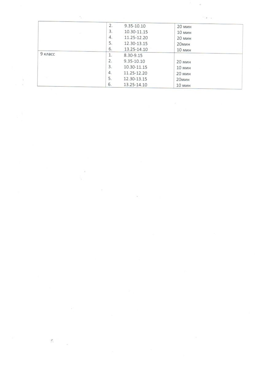 Ступенчатое расписание звонков 2020-2021 учебный год 2 страница