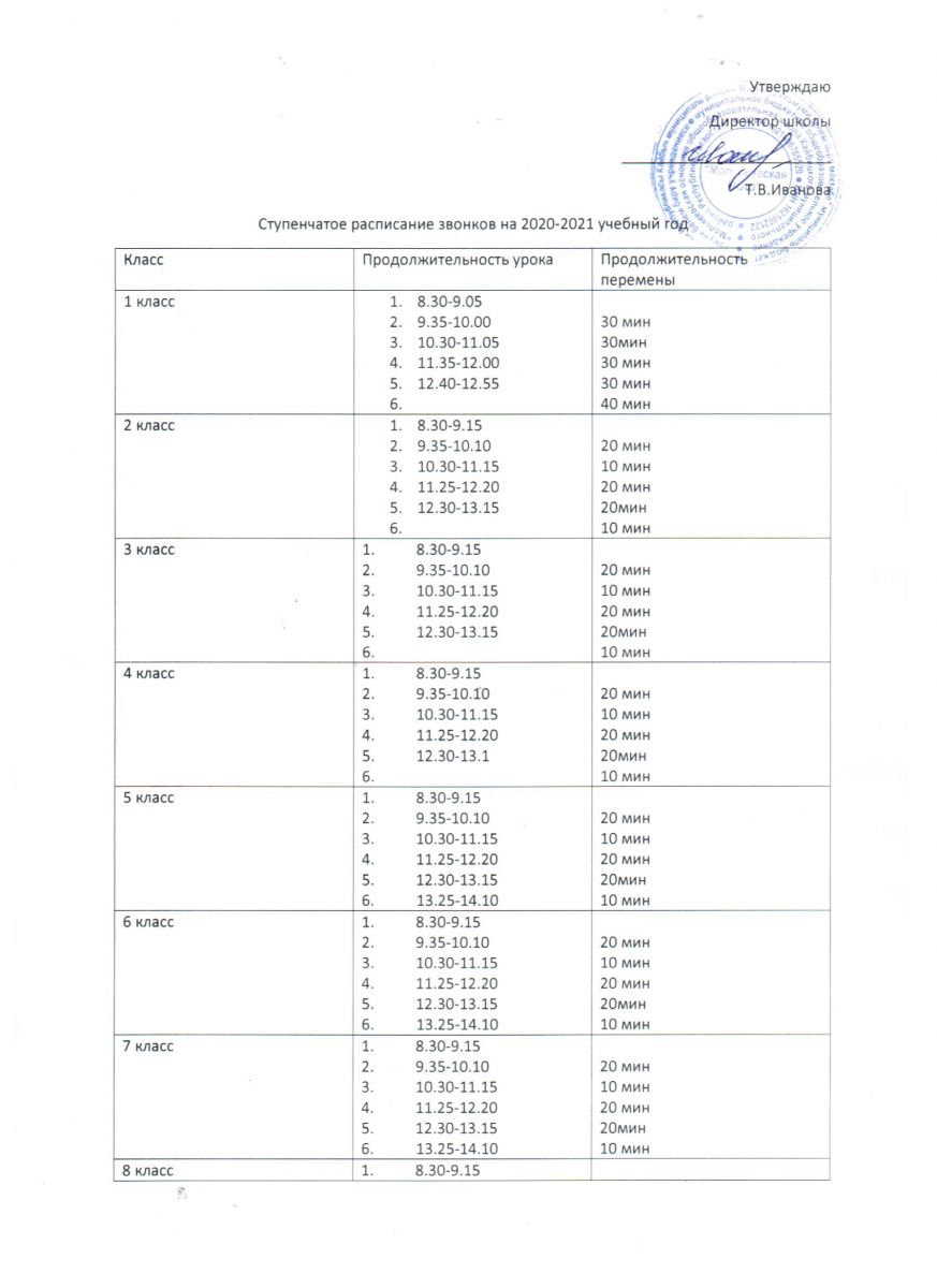 Ступенчатое расписание звонков 2020-2021 учебный год