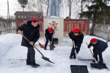 В рамках военно-патриотического месяца учащиеся школы приняли участие в акции "Путь к обилиску".Они расчистили территорию вокруг памятника от снега.
